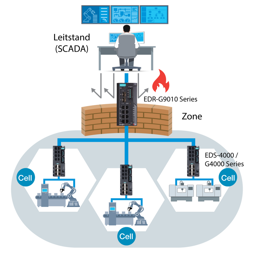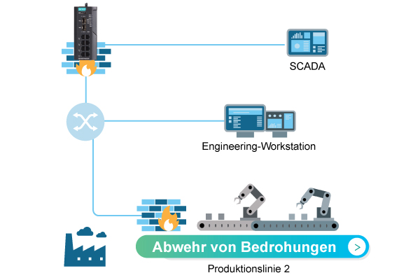 ✅ Moxa-Geräte können Cyberangriffe erkennen und ihre Ausbreitung auf bestimmte Zonen im Netzwerk begrenzen.